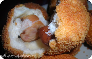# -Leperkan dough di atas tapak tgn & letakkan inti/filling. Tutup rapat supaya inti tidak meleleh keluar sewaktu dibakar.